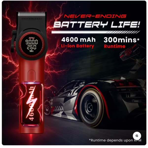 - ULTRA LARGE LED DISPLAY: The hair clippers is equipped with an ultra large intelligent digital display. The smart display shows the different speeds, as well as the current remaining operating time of the barber, making it easy to plan when to recharge. Pressing the front lighting button a light comes on directly above the blade, allowing precise haircutting even when the light is not clear
